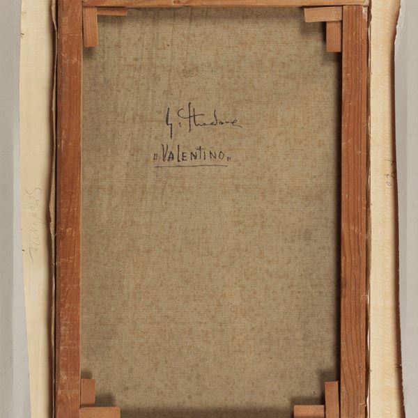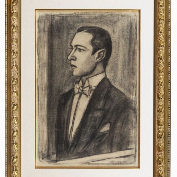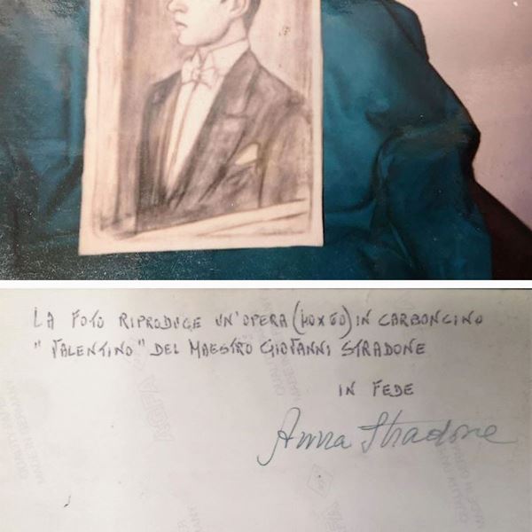 Signed on the back of the canvas. "Valentino" charcoal on canvas. Authentication on photograph by Anna Stradone, 60 x 40 cm