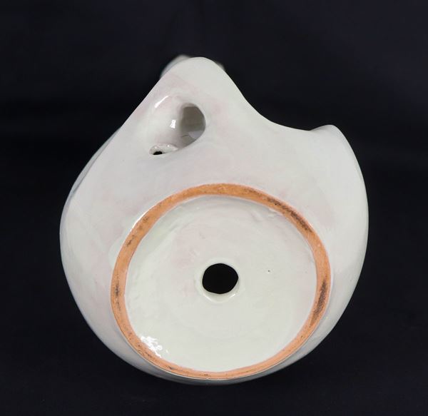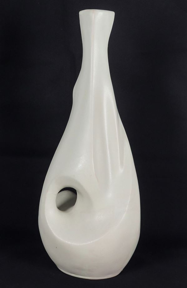 Abstract sculpture in white glazed ceramic, predisposed for electric light