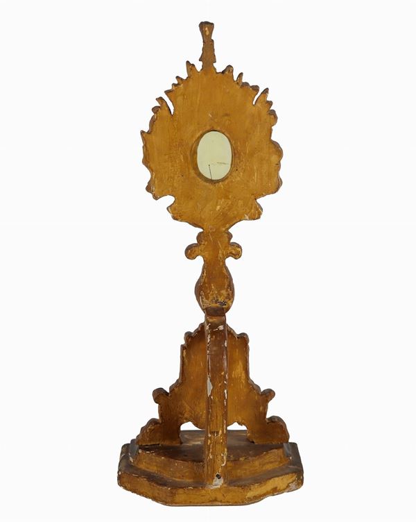 Ancient Neapolitan reliquary in gilded wood, lacquered and carved with Louis XV motifs, missing the relic