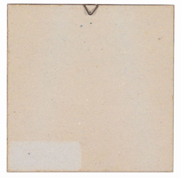 Ancient round miniature "Landscape with tower, bridge, peasants and knight", painted in oil. 18th century