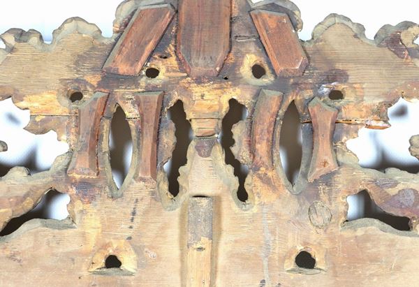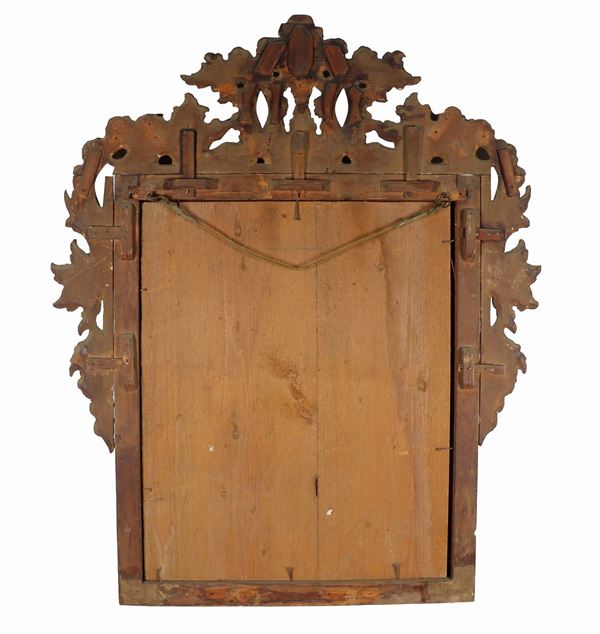 Antique Louis XV mirror in gilded wood and carved with floral intertwining motifs, mercury mirror