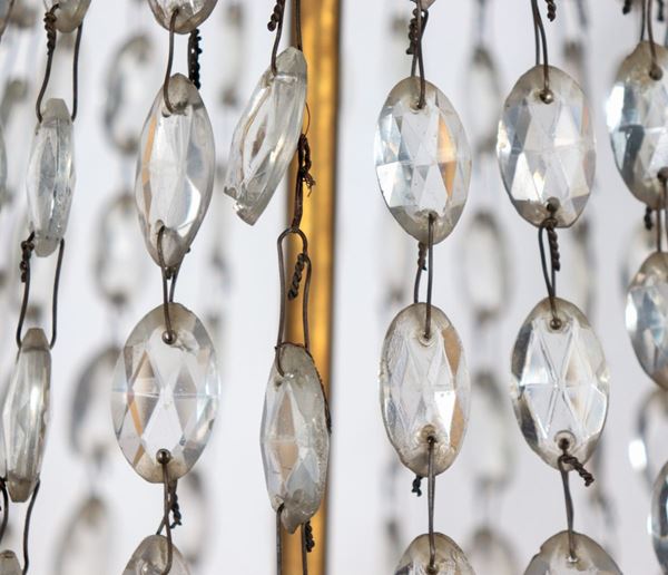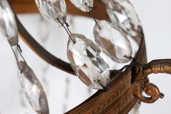 French Empire line basket chandelier, in gilded bronze with crystal beading, 6 lights
