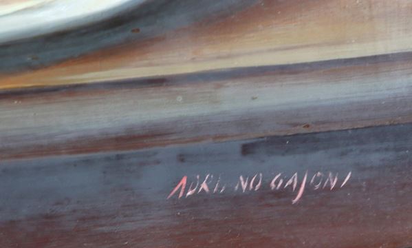 Signed. "Still life with eggs, mushrooms and game", oil painting on masonite
