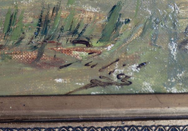 Signed lower right. “Bull”, oil painting on canvas with two defects