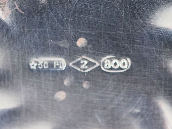 Lot of six chiselled and torchon embossed silver flutes, gr. 930