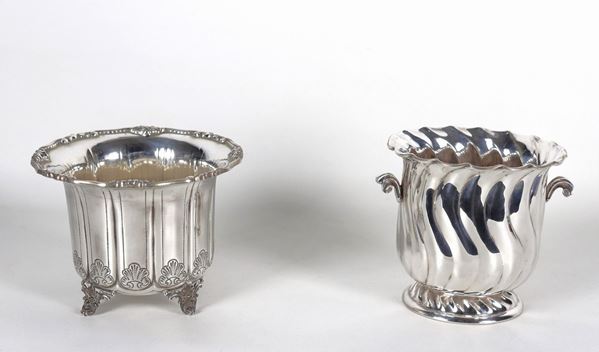 Lot of two ice buckets in chiselled and embossed silver, different shapes, gr. 780