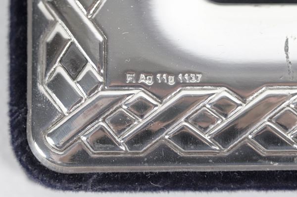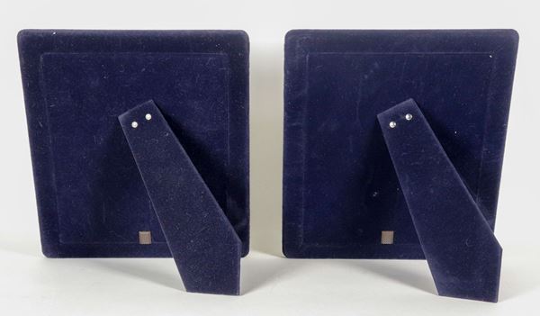 Pair of silver portrait frames with stylized Savoy knot embossed edge