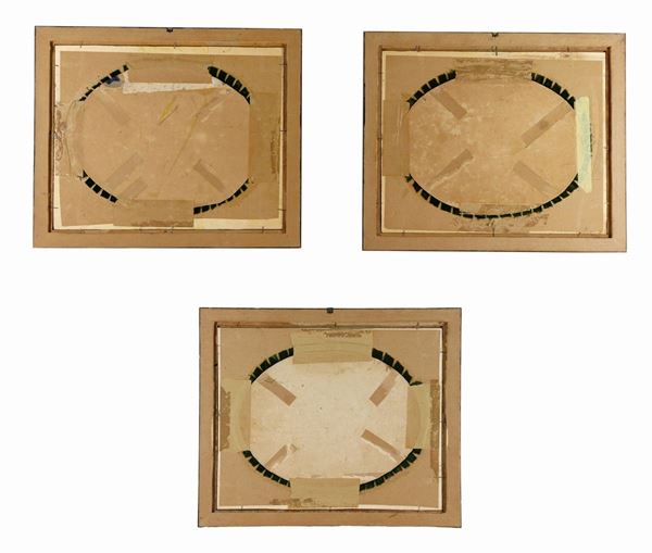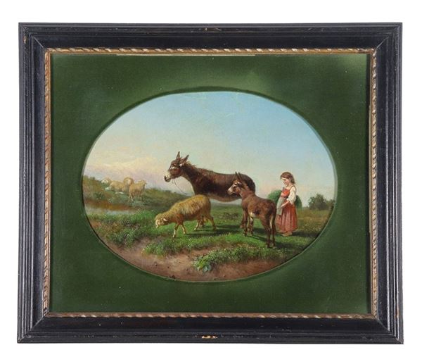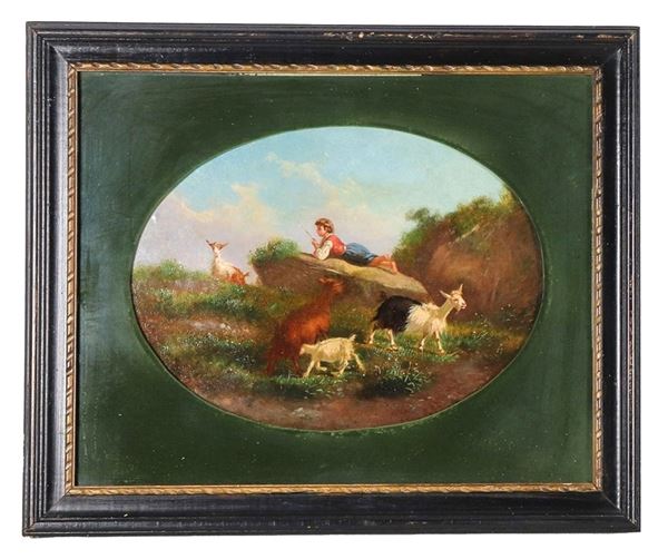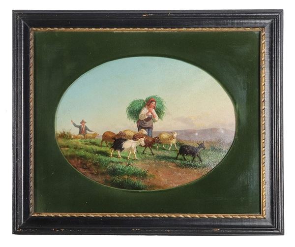 Attributed. "Landscapes with shepherd children, goats and donkeys", lot of three small oil paintings on paper