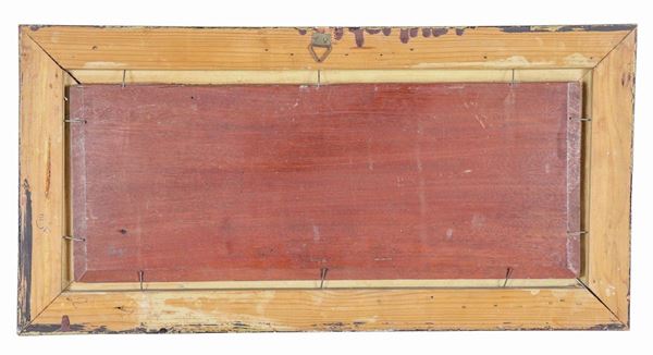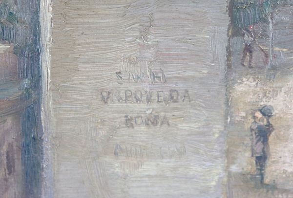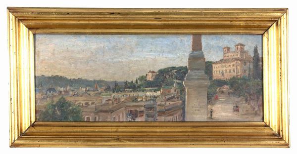 Signed. “View of Villa Medici at Trinità dei Monti”, small oil painting on wood