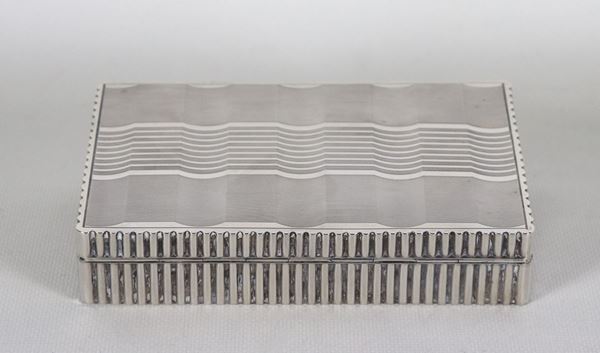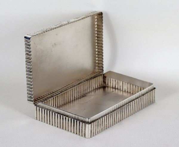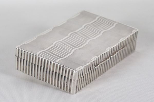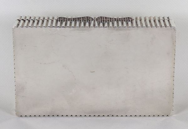 Rectangular cigarette box in chiselled and embossed silver, gr. 410