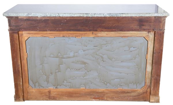 Empire line console in ivory lacquered wood with golden profiles, two drawers and two curved legs with small bronze sculptures of Egyptian heads [..]