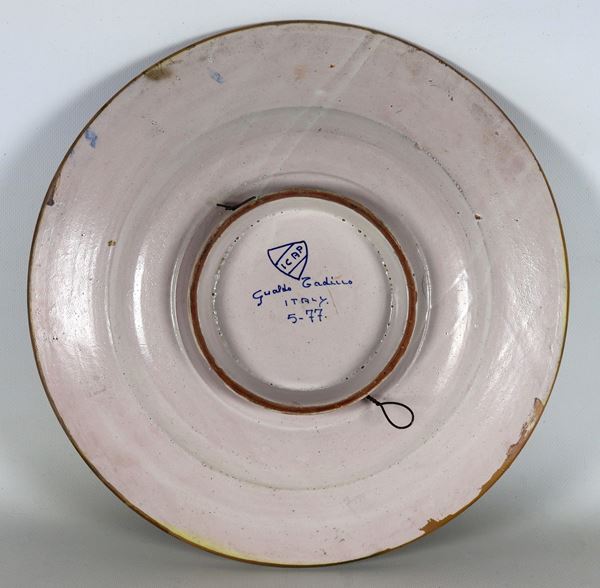 Gualdo Tadino glazed majolica parade plate marked I.C.A.P. (Italian Ceramics Angelo Pascucci), with a portrait of the sixteenth-century lady [..]