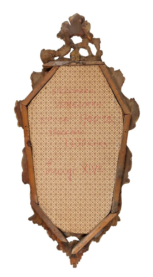 Ancient small fan mirror, in gilded wood and carved with Louis XV motifs, mercury mirror