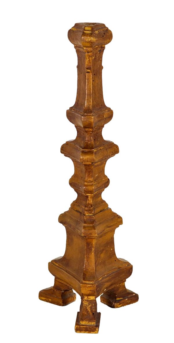 Ancient small Roman altar torch holder, in gilded wood and carved with Louis XV motifs