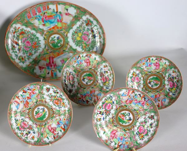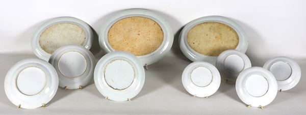 composed of: 3 oval plates, 3 small round plates and 4 medium saucers, maximum size 35 x 26 cm.