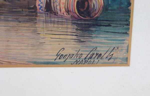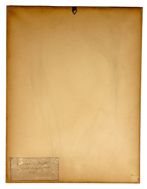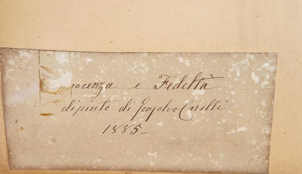 Signed and dated on the back 1885. "Innocence and Fidelity", bright watercolor on paper