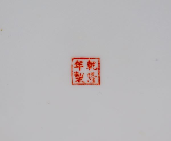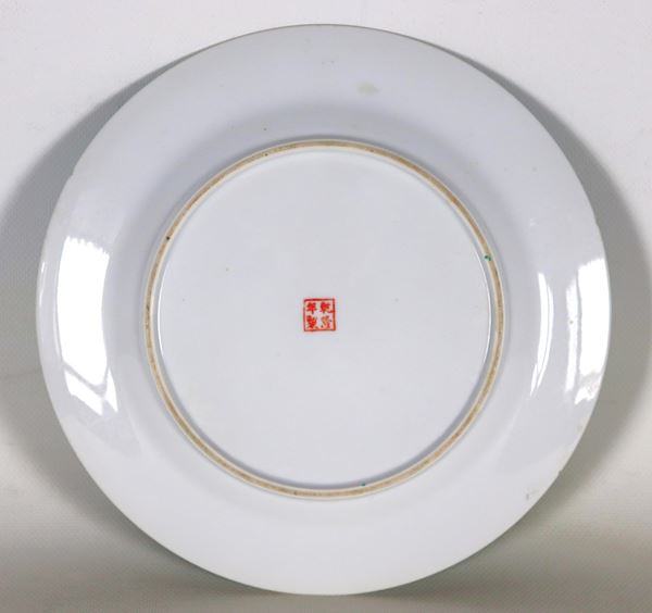 Chinese porcelain wall plate, entirely decorated with polychrome enamels in relief with flower and butterfly motifs