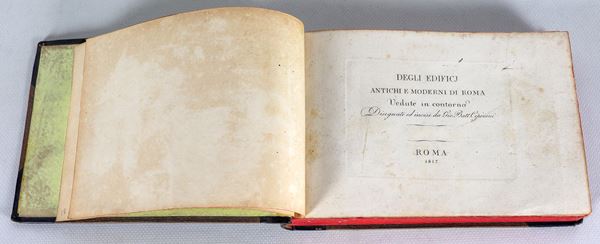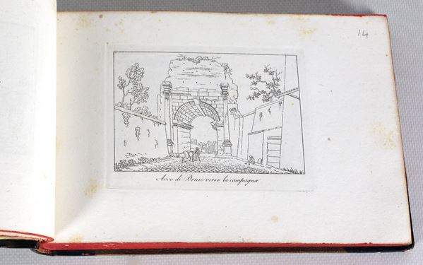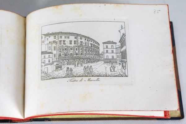 "Of the Ancient and Modern Buildings of Rome - 1817", small album of 117 small engravings, leather and leather binding