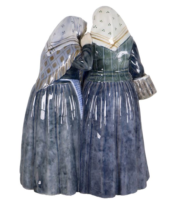 "Confidences between old ladies", Royal Copenhagen porcelain and glazed ceramic group