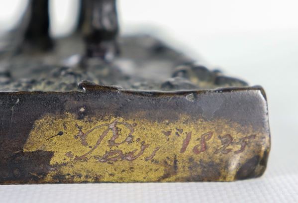 "Ddromedary", ancient small bronze sculpture. Signed and dated 1845