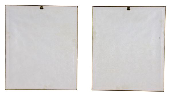 ebonized and gilded wooden frames and passepartout, 24 x 18 cm each.