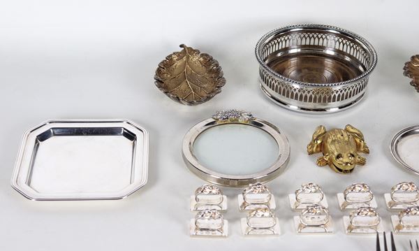a shell, a leaf, a bottle holder, saucers, place cards etc.