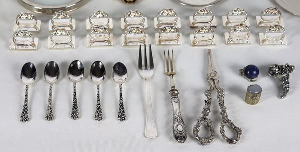 Lot in silvered, chiselled and embossed metal