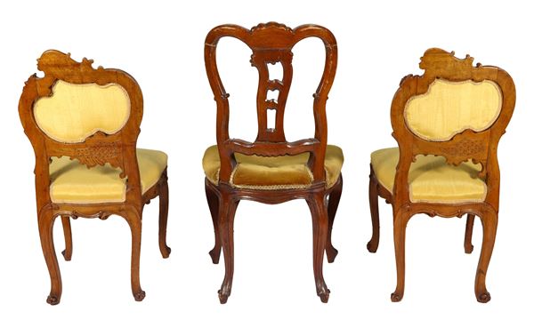 Venetian chair 50 x 50 x 92 h cm, French chairs 44 x 50 x 85 h cm each.