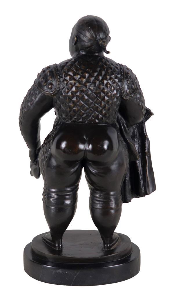 "Matador", sculpture with black marble base. Copy from Botero signed Gabo