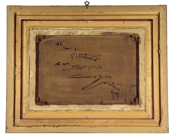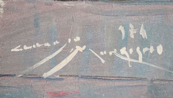 Signed and dated 1976. "Marina with dry boats and shacks", oil painting on canvas