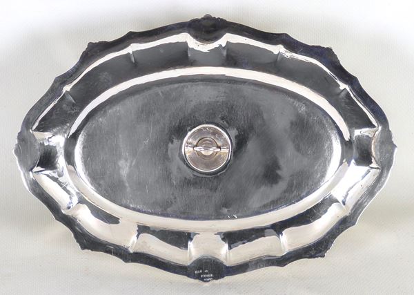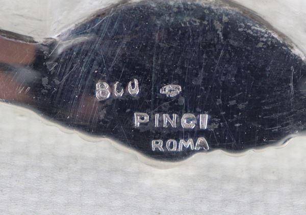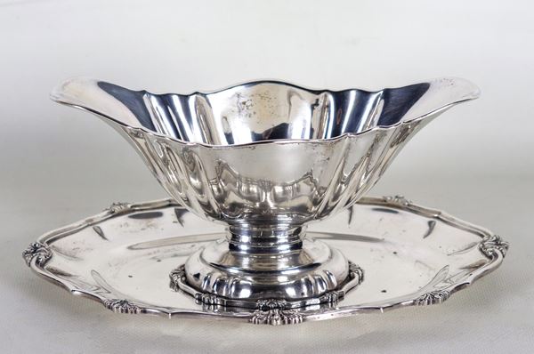 Oval gravy boat in chiselled and embossed silver with Louis XV motifs, gr. 565. Marked Pinci-Rome