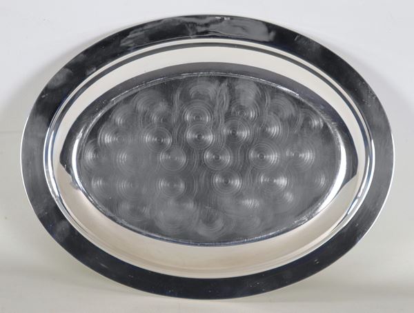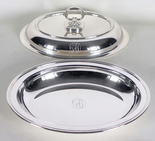 Oval silver vegetable bowl, with engraved monogram, gr. 1130