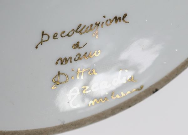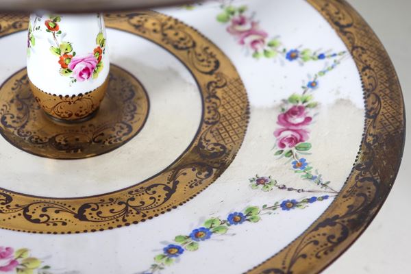 Pair of three-tier porcelain cake stands, with polychrome floral festoon decorations and pure gold edges. Old single-storey restoration of a [..]