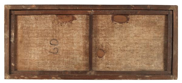 "Imaginative view of the Appia Antica with characters", large thin oil and tempera painting on canvas. The canvas has various defects