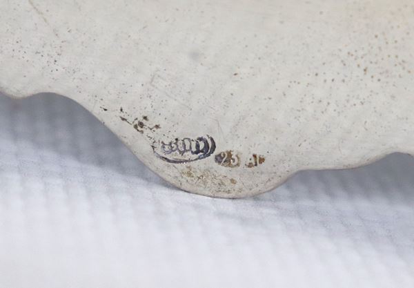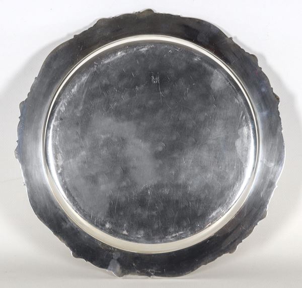 Round silver plate, with embossed and chiselled edge, gr. 570
