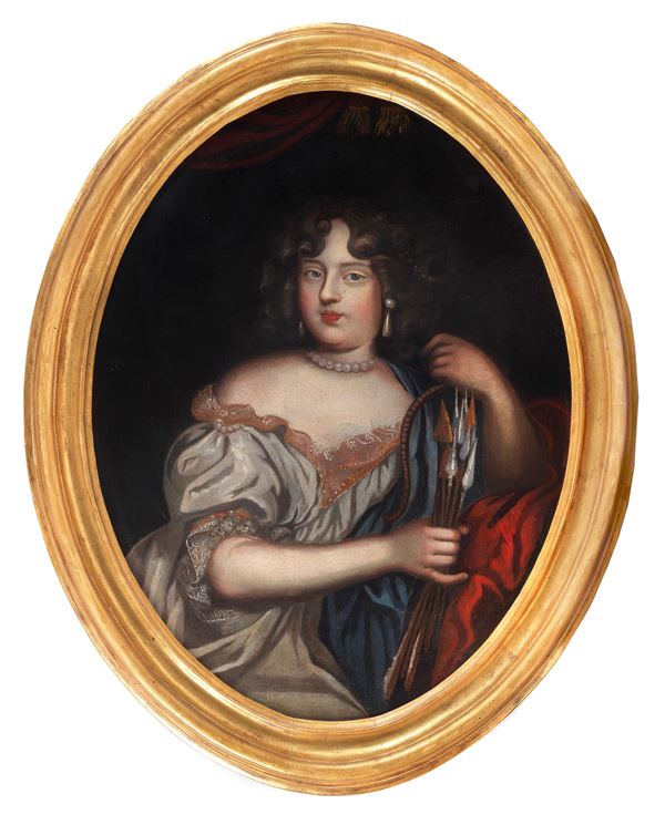 "Portrait of a noblewoman", oval oil painting on canvas. The painting is relined