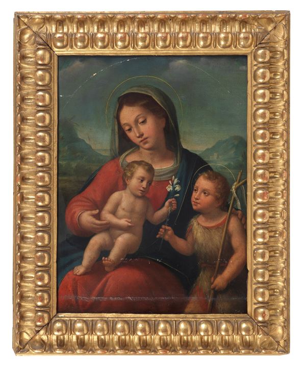 "Madonna with Child and Saint John", small oil painting on wood