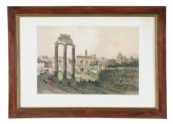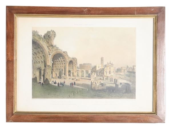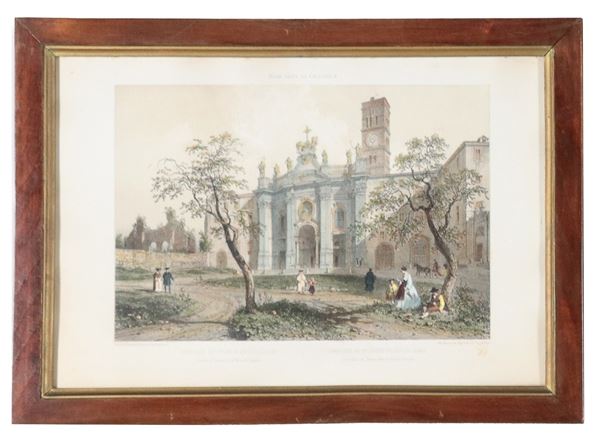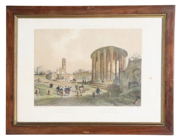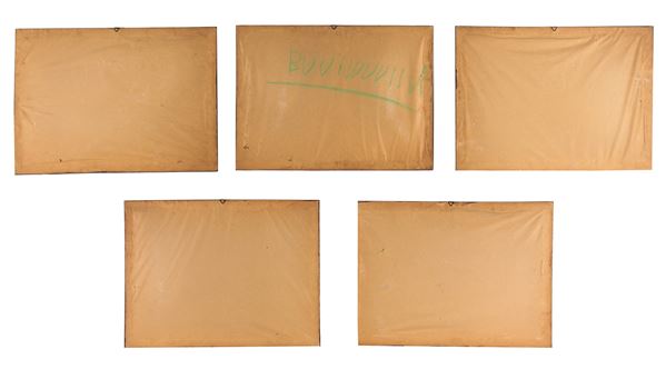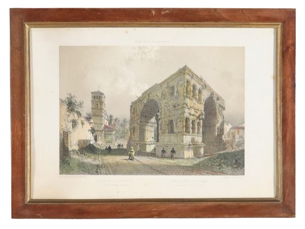 "Views of monuments of Rome", lot of five ancient watercolor prints