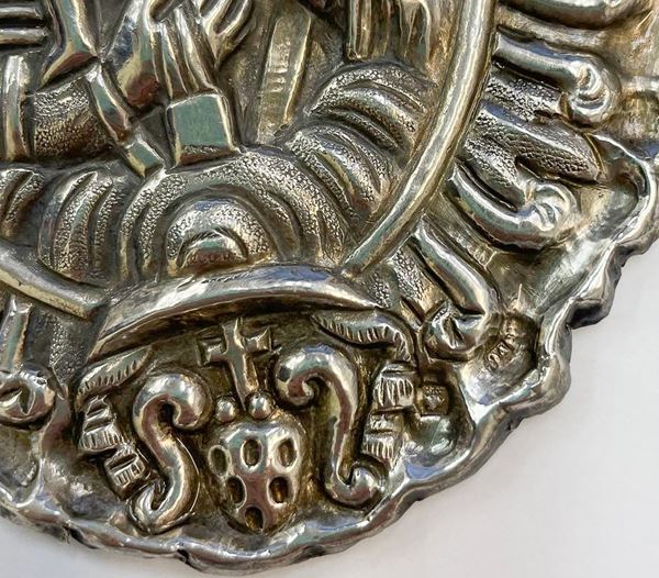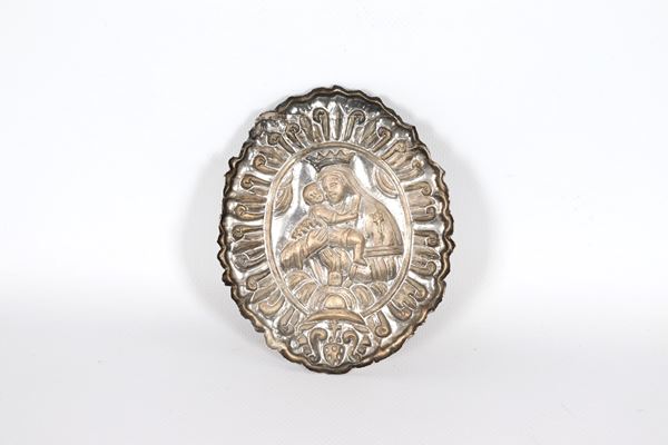 Ancient Neapolitan oval silver plaque depicting "The Madonna del Carmine", entirely chiseled and embossed. Naples stamps Ferdinand [..]