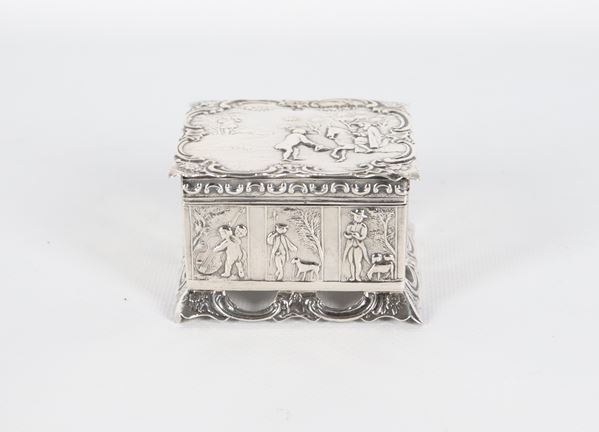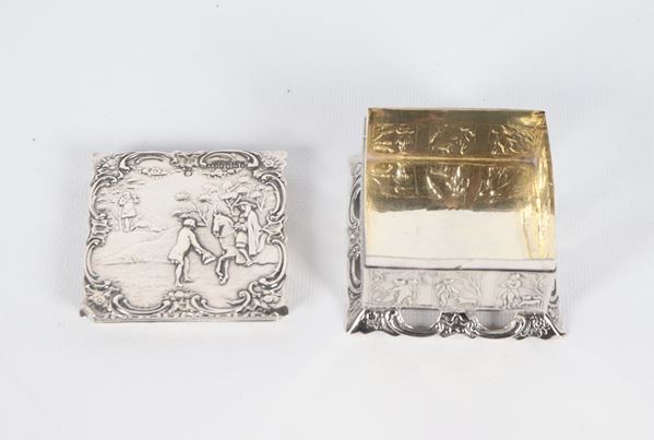 Antique Dutch box in chiseled and embossed silver with character motifs, perforated base and interior in vermeil. Dutch stamps and English import [..]