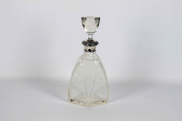 Antique French crystal bottle engraved with Louis XVI motifs, with silver-coated neck