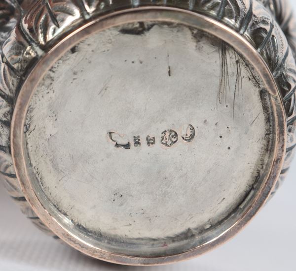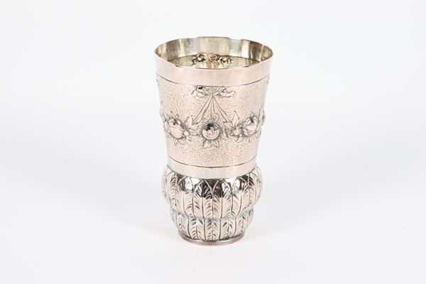 Antique silver glass, chiseled and embossed with bow and scroll motifs, 160 gr.