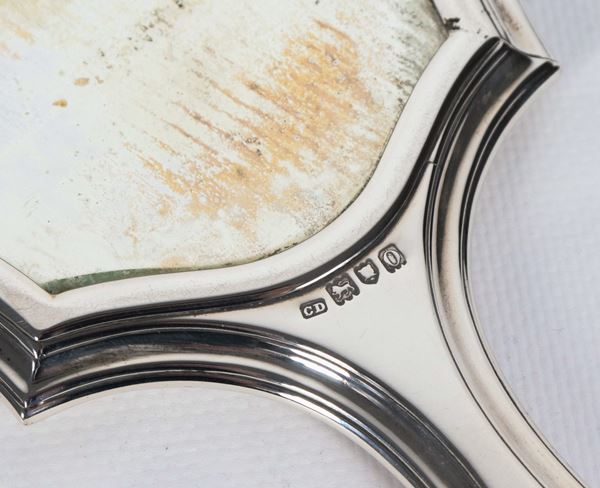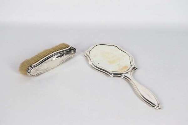 Antique silver lot of an English Edward VII mirror and toilet brush. Hallmarks London 1909.