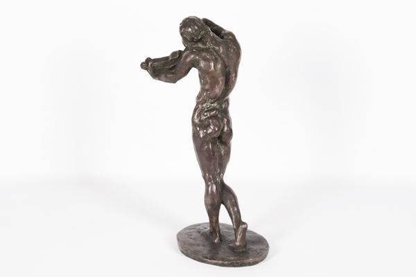 Contemporary Art. "Nude woman playing the violin", bronze sculpture