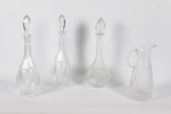 Crystal lot of: 3 bottles and 1 jug (4 pcs.)