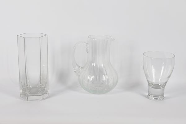 Crystal lot of a jug, a hexagonal flower vase and a small cup (3 pcs.)