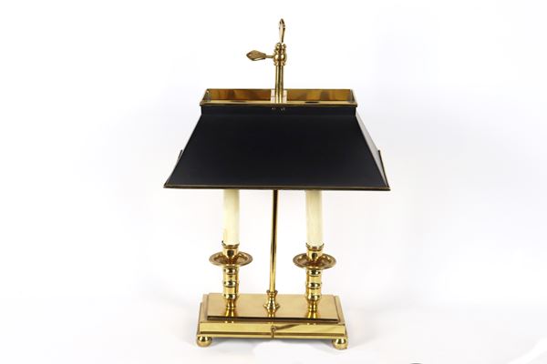 French bouillotte lamp in gold metal with adjustable black lacquered rigid shade, 2 lights