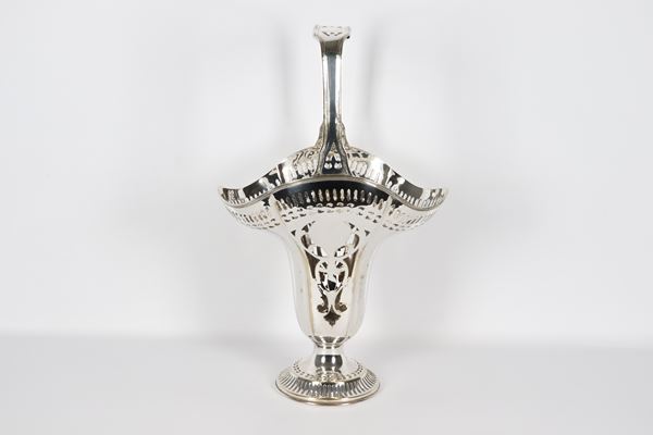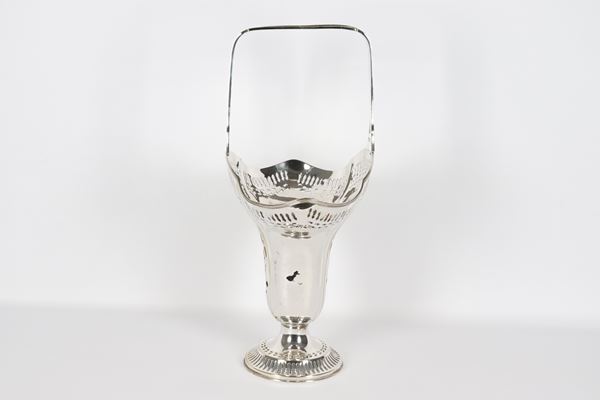 Large basket in silver metal, embossed and perforated