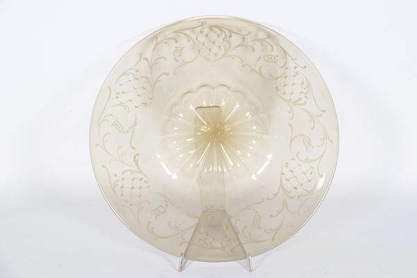 Liberty centerpiece in blown Murano glass engraved with floral scrolls