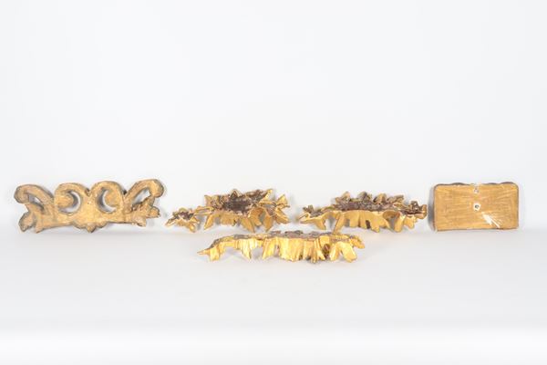 Lot of five gilded and carved wooden friezes
